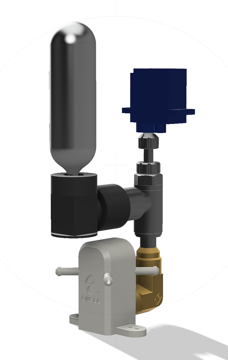 As the specifications were relatively succinct, there was a wide choice of possible solutions. In order to maximize surface area while minimizing overall volume, we decided to opt for an inflatable system. The system consists of a pneumatic valve, a striker, a servomotor and a CO2 capsule.